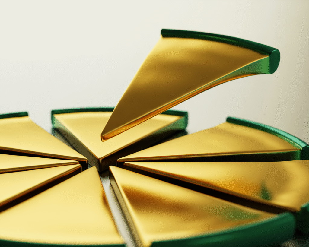 Imagina que tienes una pizza grande que cuesta 30 euros. En el modelo tradicional, tienes que comprar la pizza completa si la quieres. Pero, ¿qué pasaría si pudieras dividir esa pizza en 30 porciones de 1 euro cada una? Ahora, tú podrías comprar solo 3 porciones (3 euros) y otras personas podrían comprar las demás porciones.